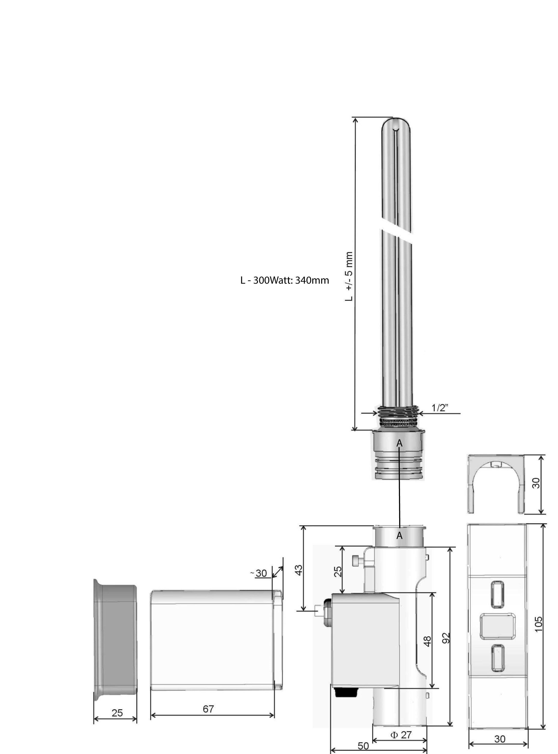 Elvarmeelement med rund profil som passer til SAVONA og kommer med en timer.